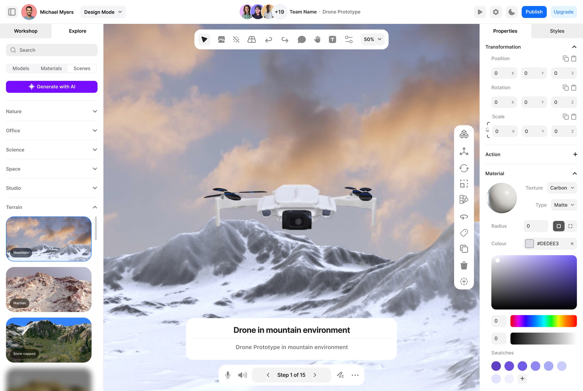 Use AI to instantly generate 3D models, materials, and scenes, perfect for rapid prototyping, filling gaps, or testing ideas before CAD files are ready. No manual modelling needed.