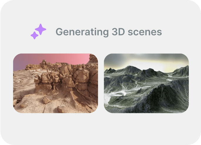 Build immersive environments in seconds. AI assembles realistic backdrops tailored to your use case, from factory floors to martian landscapes.